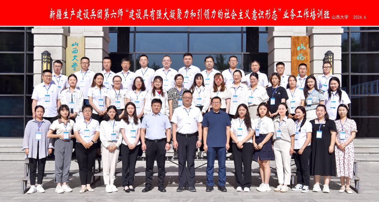 2024年6月23日至6月29日,我院举办新疆生产建设兵团第六师“建设具有强大凝聚力和引领力的社会主义意识形态”业务工作培训班,来自新疆生产建设兵团第六师从事意识形态工作的干部,共40人参加本次培训。