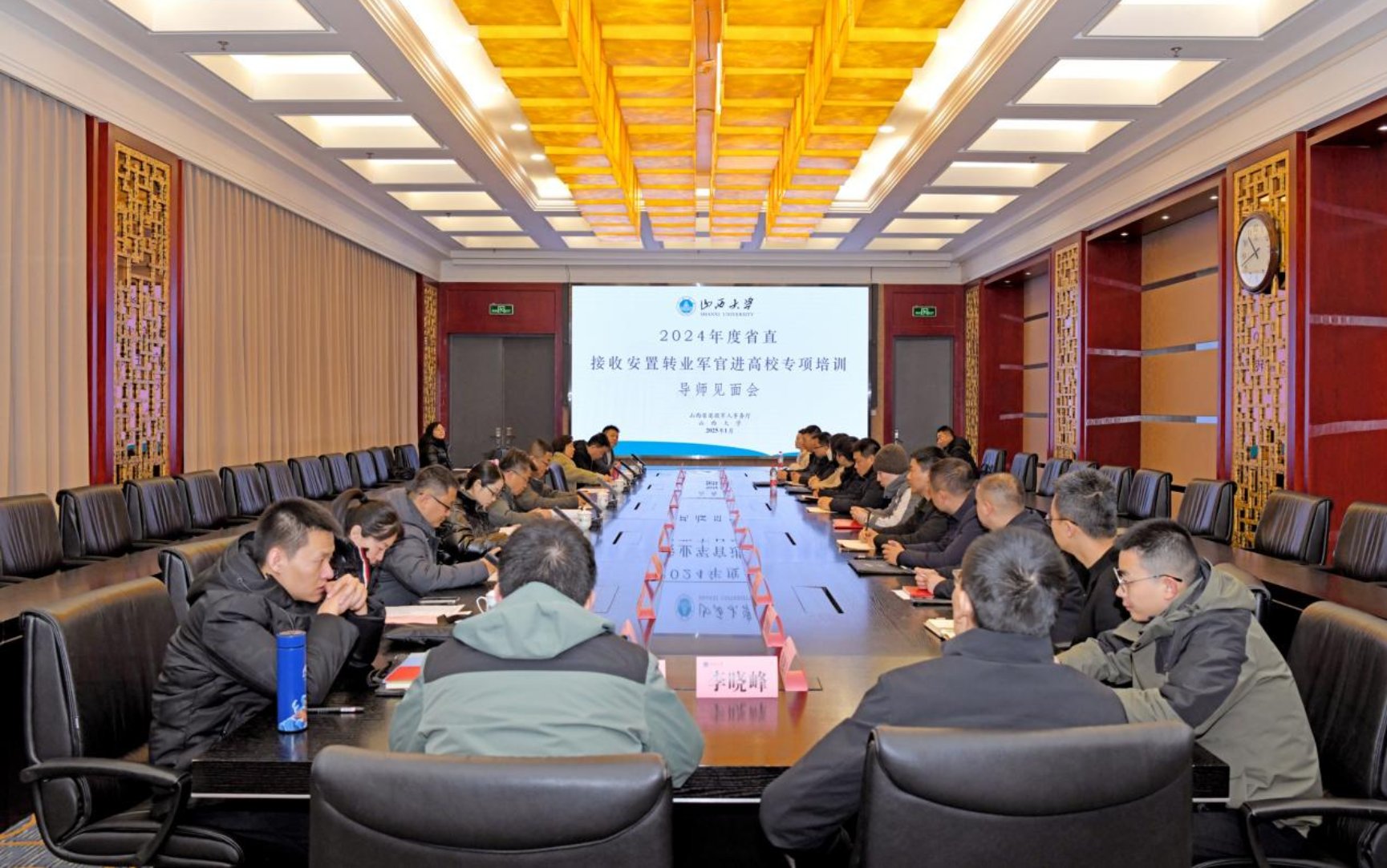开班仪式结束后,在9728太阳集团会议中心第四会议室,举行了2024年省直接收安置转业军官进高校专项培训导师见面会和班级会议。