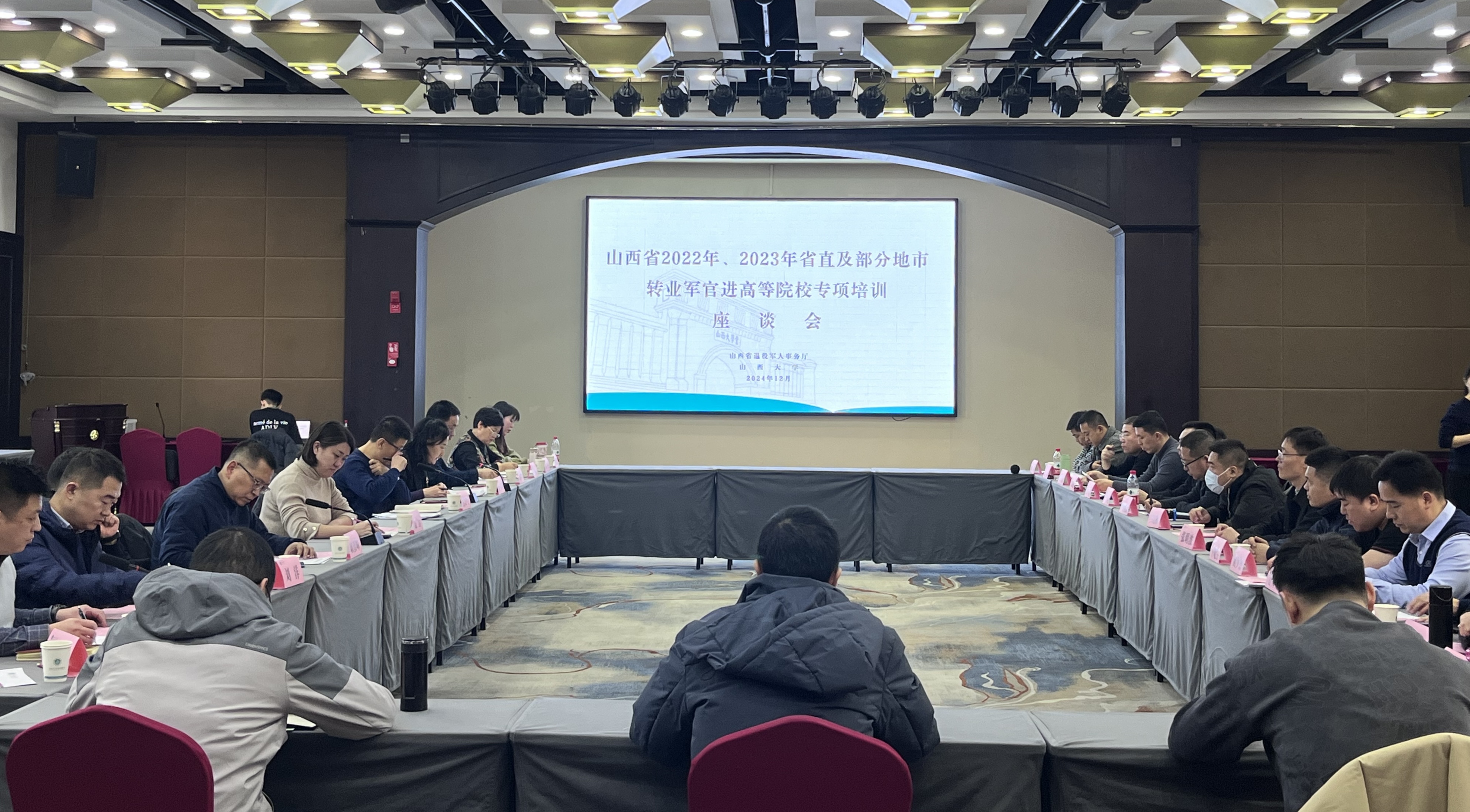 2024年12月20日下午,在9728太阳集团学术交流中心三层会议室,召开山西省2022-2023年省直转业军官进高等院校专项培训座谈会。