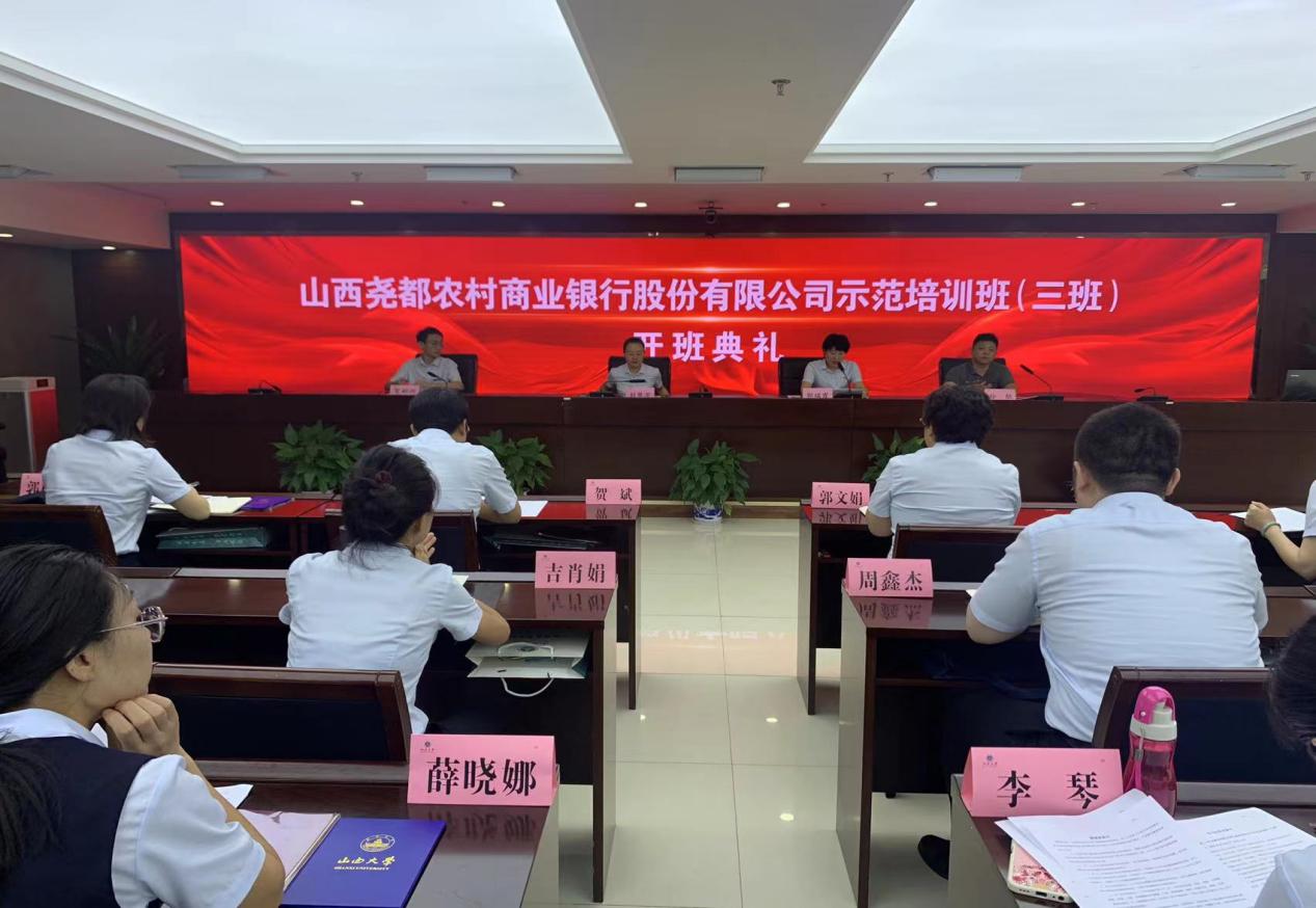 受山西省农村信用社联合社委托,2022年8月4日至8月6日,我院成功举办山西尧都农村商业银行股份有限公司示范培训班(三班),来自山西尧都农村商业银行股份有限公司的机关干部、业务骨干等140人参加了本次培训。