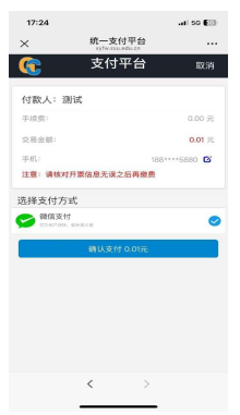 4.信息核对与支付:订单信息确认无误后,点击“确认支付”,进行微信支付,支付前请认真核对收款方信息以及金额,扣费成功后不要重复进行缴费。