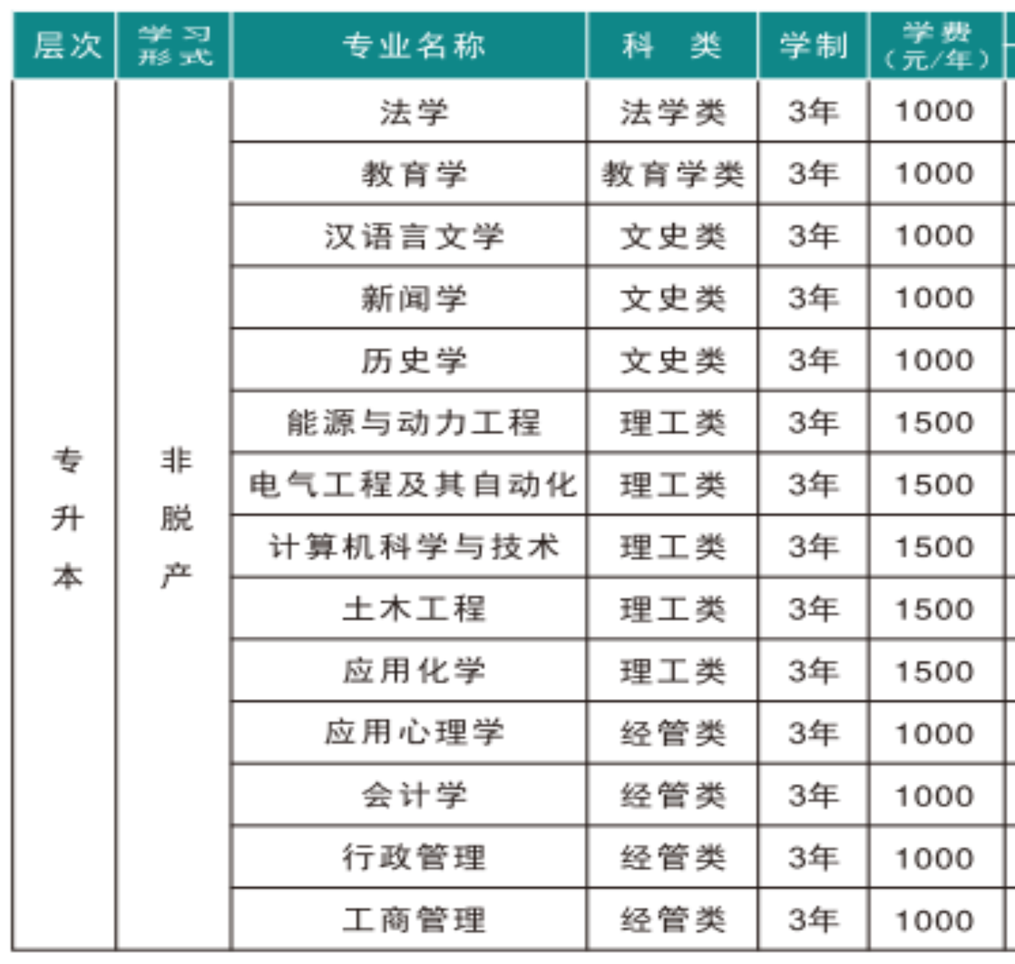 1.学费标准:文史、法学、经管、教育学类专业每生每年1000元,理工类专业每生每年1500元。