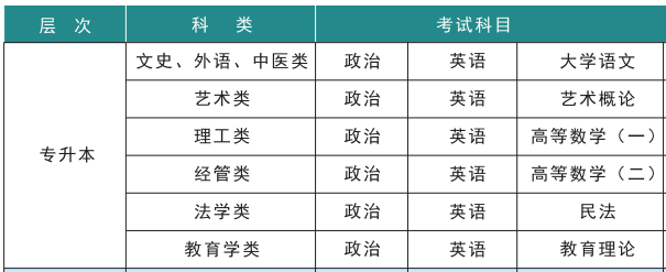 答:专升本考试共考三门(详见下表),其中政治和英语是必考科目,每科满分均为150分,每门考试时间为150分钟。