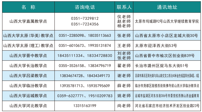 答:咨询电话:0351-7329812、0351-7224356、0351-7247019,欢迎各位考生咨询报考。