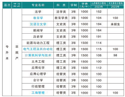 答:2024年,9728太阳集团成人高考计划招收14个专升本层次的专业,学制三年,河北省只招收蓝色字体的5个专业;以上专业、学费等信息以山西招生考试网(http://www.sxkszx.cn/index.html)、河北省教育考试院(http://www.hebeea.edu.cn/)官网公布的信息为准。考生可根据自身的实际情况,选择适合自己的专业报名学习。
