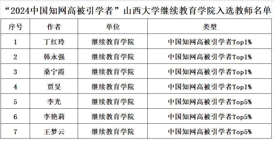 根据中国知网发布的2024中国知网高被引学者名单(PCSI),我院丁红玲、桑宁霞、贾旻、韩永强入选“2024中国知网高被引学者TOP1%”榜单。李光、王梦云、李艳莉入选“2024中国知网高被引学者TOP5%”榜单。