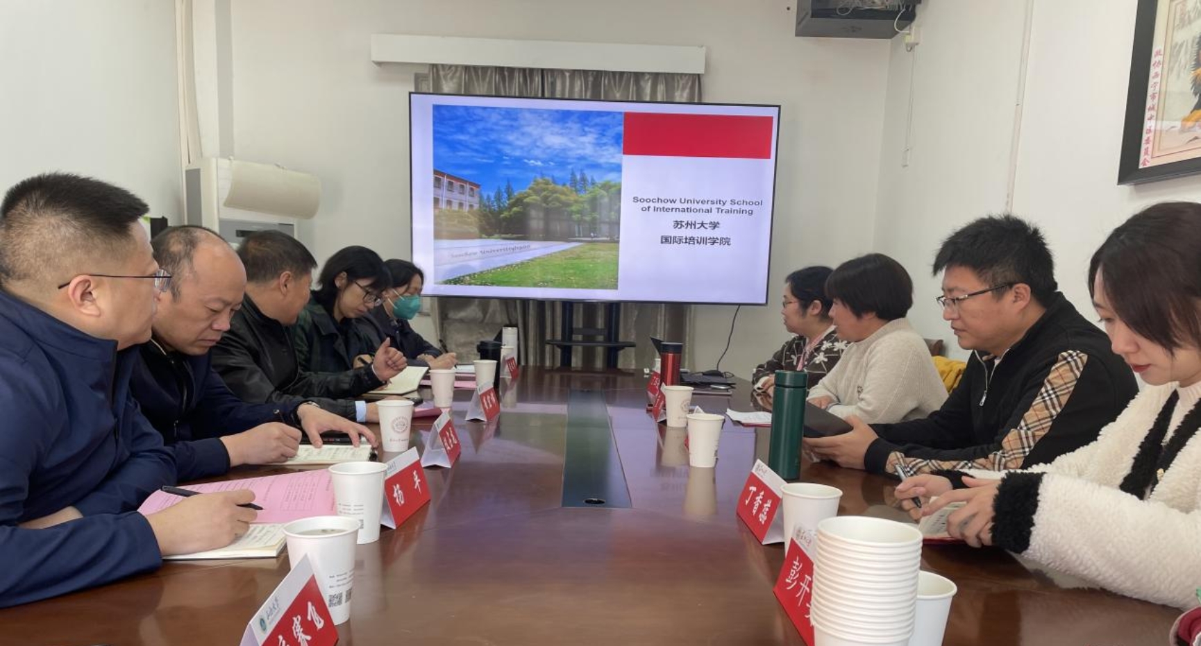 2023年3月28日上午,太阳集团网tyc9728崔宏伟院长带队赴苏州大学太阳集团网tyc9728就国际培训工作展开调研。苏州大学太阳集团网tyc9728副院长董娜、出国留学项目部主任丁珏旻、出国留学培训基地主任张峰等相关人员对太阳集团网tyc9728一行来访表示热烈的欢迎。
